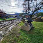 Von unterhalb der Kirche bis zum Kindergarten reicht der erste Bauabschnitt. Tonnenschwere Steine türmen sich am Rand des Obstangers auf, ein Bagger wartet auf den nächsten Einsatz, zwei riesige Baggerschaufeln liegen im Gras. Der Bach führt kaum Wasser. Es hat zu wenig geregnet in den vergangenen Wochen. Das übriggebliebene, kleine Rinnsal pumpt eine Pumpe nahe der Kirche in einen langen Schlauch. Ein Stück weiter flussabwärts läuft das Wasser wieder heraus, zurück in den Bergener Bach. So können die Arbeiter ohne nass zu werden, auf rund 100 Metern Länge die alten, morschen Holzbretter aus dem Gewässerbett ausbauen und den Grund mit Nagelfluh auslegen. Wasserbausteine verstärken bereits auf beiden Seiten einen Teil der Uferböschungen, damit sie bei Hochwasser nicht ausgespült werden. Doch es geht nicht nur um Hochwasserschutz.