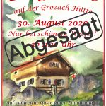 Die Bergwacht Rosenheim-Samerberg teilt mit:  “Leider müssen wir die Bergmesse der Bergwacht Rosenheim – Samerberg auf der Grozach-Hütte dieses Jahr doch absagen. Durch die aktuelle Entwicklung kann die Veranstaltung dieses Jahr nicht wie in den letzten Jahren stattfinden. Somit findet am 30. August 2020 keine Bergmesse statt. Die Bergwacht freut sich umso mehr auf zahlreiche Besucher am letzten Sonntag im August im nächsten Jahr”.
