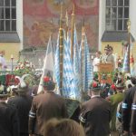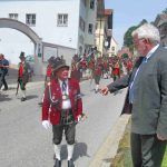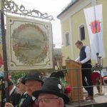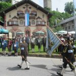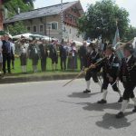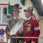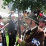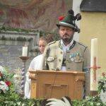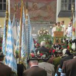 Hauptmann Sepp Stadler von der GSK Neubeuern freute sich, dass das 36. Bataillonsfest gefeiert werden konnte und sagte: „Wir feiern zwar nicht groß mit Festzelt und Festzug wie wir es geplant und gewünscht hatten, aber trotzdem finden wir den eigentlichen Sinn, denn wir beschränken uns mit einem Gottesdienst auf das Wesentliche. Schließlich ist der Gottesdienst ein Zeichen lebendiger Gemeinschaft und das tut gut in Zeiten von vielfachen Vereinsamungen“. Und er fügte hinzu: „Die Gebirgsschützen waren immer dann da, wenn sie gebraucht wurden und so sehen wir es auch heute als unsere Aufgabe, ebenso parat zu sein wie es unsere Altvorderen waren“. Für Pfarrer Christoph Rudolph, der nach einem festlichen Einzug des kirchlichen Dienstes auf der Bühne und vor der Pfarr- und Wallfahrtskirche „Maria unbefleckte Empfängnis“ den Gottesdienst feierte, sind die Bayerischen Gebirgsschützen wichtig, weil sie Förderer des christlichen Brauchtums sind und weil sie mit ihrem Vertrauen zur Mutter Gottes ihren starken Glauben an Menschen vermitteln können, die in Sorge und Not sind. Gau-Hauptmann Hans Rucker zollte der GSK Neubeuern Respekt für die Entscheidung, das schon zweimal verschobene Jubiläumsfest doch noch mit einem würdigen Gottesdienst zu feiern. Landeshauptmann Martin Haberfellner zeigte sich ebenfalls dankbar, er sagte in seinem Grußwort: „Diese heutige repräsentative Form ist ein starkes Signal, dass es uns noch gibt. Die Restriktionen, die uns Corona auferlegte und noch auferlegt sind ein guter Grund, weiterhin wachsam zu bleiben“. Stellvertretender Landrat Sepp Hofer vom Landkreis Rosenheim bat, die Heimat zu schätzen indem man nicht Flach-, sondern Tiefwurzler ist. Erster Bürgermeister Christoph Schneider von der Gemeinde Neubeuern ging als Schirmherr des Jubiläums ebenfalls auf die Bewältigung der Corona-Krise ein, er sagte: „Die Gesellschaft hat sich in den letzten Jahren rapide verändert, der Wohlstand, gerade in unserer Region, ist auf ein Maximum angewachsen und trägt dazu bei, dass sich die Menschen unabhängiger fühlen. Viele Menschen entwickeln dabei auch das Gefühl, dass sie nicht mehr aufeinander angewiesen sind und somit nur noch ihren ganz unterschiedlichen und individuellen Interessen nachgehen“. Gemeinsam mit seinem Stellvertreter Wolfgang Sattelberger übergab er an GSK-Hauptmann Sepp Stadler eine Spende in Höhe von 500 Euro sowie ein geschmiedetes Erinnerungsgeschenk. Hauptmann Fritz Dräxl von der Patenkompanie Samerberg, die auch für den Ehrensalut sorgte überbrachte in seinem Grußwort eine zuvor von Pfarrer Christoph Schneider gesegnete Schützenscheibe.