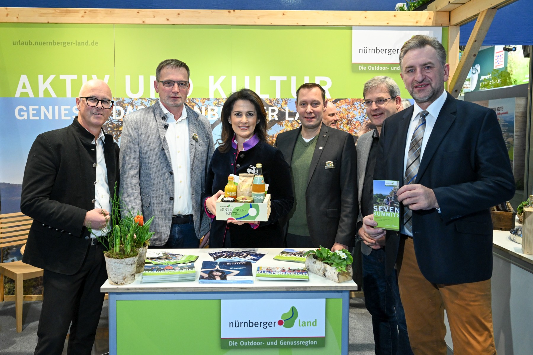 Nach zwei Jahren Coronapause präsentiert sich der Freistaat Bayern in diesem Jahr wieder auf der Internationalen Grünen Woche in Berlin als Land der Genüsse. In der großen Bayernhalle – seit vielen Jahren der Besuchermagnet schlechthin – zeigen über 50 Aussteller den Besucherinnen und Besuchern, was der Süden Deutschlands an kulinarischen Spezialitäten und als gastfreundliche Urlaubsregion zu bieten hat. Auch der Tourismusverband Nürnberger Land und Hersteller regionaler Spezialitäten werben für die mittelfränkische Ferien- und Genussregion. Bei ihrem Rundgang durch die Bayernhalle schaute Agrarministerin Michaela Kaniber auch beim Stand des Nürnberger Lands vorbei.