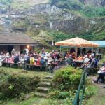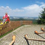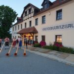 Der zweite Tournee-Tag begann mit einem Konzert auf dem Marktplatz von Waltersdorf, einem Erholungsort am Fuße der Lausche, im Naturpark Zittauer Gebirge. Vor der historischen Schankwirtschaft „Niederkretscham“ mit einem Naturpark-Haus, in dem anhand einer Erlebnisausstellung der „Naturpark Zittauer Gebirge“ den Gästen näher gebracht wird, waren auch hier die alpinen Klänge eine Premiere. Ebenso auf der Terrasse der dortigen Hubertusbaude, mit einem atemberaubenden Blick über die Oberlausitz. Im Anschluss führte der Weg weiter nach Ebersbach. Es galt ein alpines Ständchen für die Tante der Alphornspielerin Hilla, der 98-jährige Tante Erika Pietsch, darzubieten, um deren Genesung zu begünstigen. Im Anschluss dann ein geselliges Zusammensein im Altersheim in Neusalza mit alpinen Klängen und volkstümlichen Liedern auf dem Akkordeon. Höhepunkt war dabei das “Oberlausitzlied”, die offizielle Hymne der Region. Zum Abschluss des Tages dann nochmal ein Abstecher nach Tschechien, ins Restaurant Stary Mlyn in Ro’zany. Nach alpinen Klängen bei Sonnenuntergang, im Vorgarten des Restaurants, ging es zurück zum Kurort Jonsdorf. Dort hat sich zum Abschluss des ereignisreichen Tages der Sternwartenleiter Frithjof Helle bereiterklärt, dem Ensemble eine sachkundige Führung an der Volkssternwarte-Jonsdorf zu geben.
