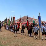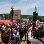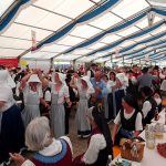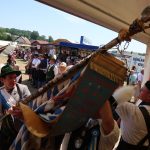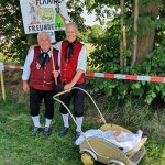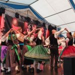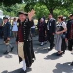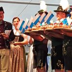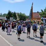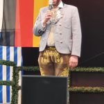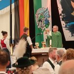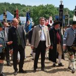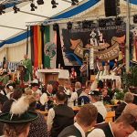 Bei einem Bilderbuchwetter mit weiß-blauem Himmel und hochsommerlichen Temperaturen reihten sich über 130 Trachten- und Brauchtumsvereine in den Festzug ein. Darunter auch 6 Vereine des Mitteldeutschen Heimat- und Trachtenverbandes, organisiert von Marlies und Charles Koppehele, sowie von Jörg Dombrowski: Die Fläming-Freunde, Folkloretanzgruppe Berlin-Köpenick, Tanz- und Trachtengruppe „Salzburgkapelle“, Tanzstudio Böhlen der Musik/Kunstschule Landkreis Leipzig, Verein Rubisko Lübbenau, Spreewald und der Verein der Bayern in Berlin. Bereits beim Heimatabend am Vortag sorgte der Mitteldeutsche Trachtenverband mit der Annemarie-Polka für Hochstimmung im Festzelt, wo die Gäste in allen Gängen mittanzten. Ein Highlight war dann auch der Einzug ins Festzelt. Allen voran der Bayerische Ministerpräsident Markus Söder unter den Klängen des Bayerischen Defiliermarsches, durch ein Spalier von über 100 Fahnen. Ein großer Beifall galt ebenso dem Einzug der Fahnen. Trotz des anstrengenden Umzugs bei Temperaturen von bis zu 37 Grad Celsius, ließen es sich die Fahnenträger nicht nehmen, ihre Fahnen beim Einzug eindrucksvoll zu schwingen. In Anspielung auf diesen schweißtreibenden Akt merkte Knuth Kreuch später ironisch an, dass man eine Tracht spüren muss, wenn sie auf der Haut klebt.