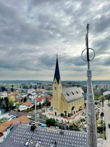 Eine der vielen Aufgaben des Bernauer Bauhofs ist das Anbringen der Maibaumfiguren. Diese werden zum Schutz vor dem Winter abgenommen, über den Winter im Bauhof liebevoll wieder hergerichtet und kurz vor dem ersten Mai mit der Drehleiter der Priener Feuerwehr erneut aufgehängt. Der Bauhofmitarbeiter, der dieses Jahr die Figuren wieder angebracht hat, teilt gerne die Aussicht von der Maibaumspitze hoch über Bernau. In diesem Sinne: einen schönen ersten Mai!