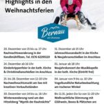 Bernau am Chiemsee lädt Einheimische wie Gäste zu einem abwechslungsreichen Programm während der Weihnachtsferien ein. Unter dem Motto „Highlights in den Weihnachtsferien“ erwartet Besucherinnen und Besucher eine Vielzahl an stimmungsvollen Veranstaltungen für alle Altersgruppen – von besinnlich bis aktiv, von kulturell bis naturkundlich.