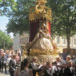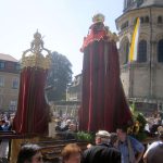 Zu den sicher eindrucksvollsten katholischen Festen in Deutschland zählt Fronleichnam, das Fest des „ Heiligsten Leibes und Blutes Christi“, das in der Mitte des 13. Jahrhunderts kirchlicherseits eingeführt wurde. Besonders feierlich wird die Fronleichnamsprozession noch heute in der oberfränkischen Bischofsstadt Bamberg abgehalten. Nach dem Festgottesdienst auf dem Domplatz, vor dem romanischen Kaiserdom, bewegt sich der lange Zug mit dem Allerheiligsten, getragen von Erzbischof Ludwig Schick, mit zahlreichen Tragefiguren der Zünfte und Bruderschaften sowie den gewaltigen Baldachinaufbauten mit dem Mariengnadenbild aus der Oberen Pfarre und der Pieta vom Beginn des 14. Jahrhunderts aus der Martinskirche durch die Straßen und Gassen der Stadt. Dabei ist es für zahlreiche Bamberger eine Ehre bei der Prozession mitzuhelfen. Allein das wertvolle, 16 Zentner schwere, Domkreuz wird von 18 Trägern bewegt. Die Gebete, Gesänge und Segensworte werden über Lautsprecher in der gesamten Altstadt übertragen, so dass sich kein Besucher der Stadt dem feierlichen Geschehen entziehen und selbst in einem der zahlreichen Cafés an der Liturgie teilnehmen kann (oder muss).