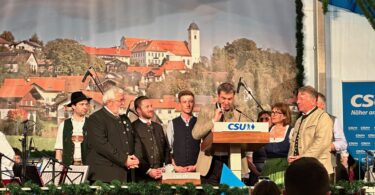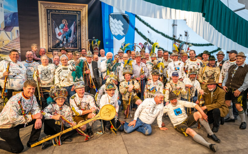 Nussdorf am Inn – „Es mag nicht wenige von Euch heute gegeben haben, die sich sagten, was ist denn heute Abend mit den Nussdorfern los, ist denn schon wieder Fasching?“ – diesen Eindruck gewann Georg Mayer als Vorsitzender des Krieger-, Veteranen- und Kameradschaftsvereins, der zum Abschluss seiner 150-jährigen Festlichkeiten noch einmal ins Festzelt zu einem Kesselfleischessen mit Reservistentreffen eingeladen hatte. Dann fügte er hinzu: „Da es schon eine lange Zeit keinen Grundwehrdienst mehr gibt, gibt es auch keine solchen Männer, die mit Entlassungshut, T-Shirt und Pickel aufkreuzen. Aber heute haben wir es geschafft, wieder 68 solcher ehemaligen Soldaten mit ihren auffälligen Utensilien zusammenzubringen“. Der Abend war für Vorstand Georg Mayer und Festleiter Thomas Dettendorfer auch guter Grund zum großen Danke-Sagen, das „Vergelt’s Gott“ galt neben Gemeinde, Grundstücksbesitzern, Wirts- und Brauerei-Personal vor allem auch noch den Frauen und Männern der Kuchen- und Kaffee-Bar sowie dem Dirndl- und Burschenverein, der fünf Tage den Bar-Betrieb aufrecht hielt. Die Unterhaltung an diesem Abend übernahmen der örtliche Trachtenverein, die Karolinenfelder Musikanten sowie elf von Ziach- und Posaunen-Musikanten begleiteten Goaßlschnalzern. Für alle Besucher, aber vor allem für die Reservisten war die zum Jubiläum im Festzelt erstellte Ausstellung nochmals ein besonders guter Anlass, dem Jubiläums-Motto „Den Frieden zu wahren und vor Krieg zu mahnen“. Mit der letzten Veteranenveranstaltung sind die Festlichkeiten in Nußdorf noch nicht zu Ende. Nun geht es weiter mit dem 150-jährigen Jubiläum der Musikkapelle Nußdorf am Inn, Höhepunkt ist am Sonntag, 21. Mai das Bezirksmusikfest vom Bezirk Inn-Chiemgau.
