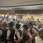 Beste Stimmung war beim Leonharditanz im Gutsgasthof in Thambach. Die Aktiven des Reichertsheimer Trachtenvereins hatten dazu die aus dem Altöttinger Raum stammende „Blechduin-Musi engagiert, die das überwiegend jugendliche Tanzpublikum, aber auch die Zuhörer begeisterte. Als Eintrittszeichen hatten die jungen Trachtlerinnen und Trachtler das Logo für das Gründungsfest 2025 gewählt, das auf ein Holzzeichen gebrannt wurde. Einige dieser Zeichen wurden in einer Variante hergestellt und wer ein solches Zeichen erwischt hatte, bekam einen Ehrtanz und durfte dann die Bar besuchen. Das von einer Vielzahl von Tanzpaaren aufgeführte „Mühlradl“ und ein Gemeinschaftsplattler aller Burschen gehörten zu den Höhepunkten des Abends. Die im Kaminzimmer eingerichtete Bar, in der die „K-4-Musi“ aus Kirchdorf aufspielte, wurde fleissig frequentiert.