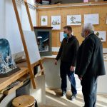 Der Leiter der Krippenbauschule des Bezirks Oberbayern, Martin Königsdorfer stellt sich den neugierigen Fragen des Bayernbund-Landesvorsitzenden Sebastian Friesinger (re.) und von Redakteur Fritz Lutzenberger (li.)