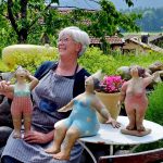 „Ja, mit Ideenreichtum und Liebe zum keramischen Handwerk. Aber drauf gekommen bin ich durch den Impuls von einer Zeitung“, erzählt sie von der Begegnung mit einer Figur, „die mich sofort angesprochen hat.“ Pia fing an, so eine Frau zu „schöpfen“ und war glücklich, „weil sie mir auf Anhieb gelungen ist.“ Heute arbeitet sie mehrdimensional: der Kopf wird gedreht, Hände und Füße modelliert und alles für die Einzelteile von unten nach oben aufgebaut.
