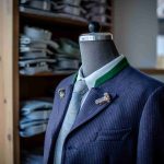 Damit unterscheiden sich seine fertigen Stücke sehr wohl von der zumeist erhältlichen Konfektionsware, bei der eine Stofflage mit Papp fixiert ist. Natürlich sorgt diese Arbeits- und Vorgehensweise für mehr Arbeit und Aufwand, aber dass es sich lohnt, das zeigt sich spätestens bei der Anprobe und ganz bestimmt beim ersten Ausgang mit dem neuen Gewand.