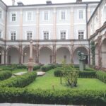-Der begrünte Innenhof befindet sich im Gebäude des ehemaligen Franziskanerklosters, in dem heute das Tiroler Volkskunstmuseum untergebracht ist