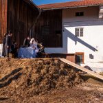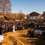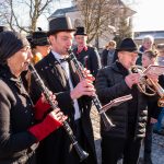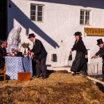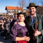 Ganz Söllhuben war auf den Beinen, als der örtliche Trachtenverein “D´Hochlandler” zur heurigen Bettelhochzeit einlud. Lisbert Vollinger und Odlgundis Furzner sagten sich zwar auf dem Misthaufen das “Ja-Wort” und schworen “ewige Treue” – doch schon die Hindernisse und Eskapaden bei Tageslicht ließen schon befürchten, dass die Ehe nicht bis zum Anbruch des nächsten Tageslichtes halten wird. Die „Braut“ ist ziemlich groß und maskulin, der Bräutigam wesentlich kleiner. Schönheit ist keine Bedingung für eine Bettelhochzeit. Auf dem Misthaufen werden die beiden bis zum Aschermittwoch „verheiratet“. Ein Hochzeitszug mit geschmückten Wagen führte durch Söllhuben zum Standesamt. Es war ein stattlicher Hochzeitszug mit Hochzeitskutsche, Kammertwagen mit der Mitgift der Braut sowie der ganzen narrischen Hochzeitsgesellschaft und einigen Hundert Zuschauern. Die Garderobe für die Hochzeitsgesellschaft auch heute dem Anlaß gemäß sehr festlich „schwarz/weiß.“ Hochzeitslader war Simandl Gscheidmayer, der Grattler von Parnsberg. Eines ist sicher: der Trachtenverein, die Wildenwarter und Söllhubener Musikanten, die Progoder, die Ehrleute, die Hochzeitsleute und alle, die im Wege oder am Wegrand standen, sie alle hatten eine Menge Gaudi. So fand ein Faschingstreiben statt, bei dem die Gäste nach der Hochzeit noch ausgelassen auf das Brautpaar anstoßen können, gemäß dem Motto „Vivat das elende Brautpaar!“ Natürlich fand auch noch ein „Jungfrauenlauf“ statt. Von dieser Freude mögen diese Bilder von der Söllhubener Bettelhochzeit zeugen.