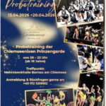 Auch dieses Jahr werden Probetrainings für die kommende Saison angeboten. Diese finden am 13.04.2026 und am 20.04.2026 für die Kinder- und Jugendgarde sowie der Prinzengarde in der Mehrzweckhalle statt, für unsere Bambininixen am 16.04.2026 sowie am 24.04.2026 in der Turnhalle der Grundschule Bernau (jeweilige Uhrzeiten siehe Flyer).