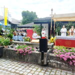 Bericht und Fotos: Christiane Giesen – Der Feldaltar mit Diakon Heiko Jung und Pfarrer Konrad Roider im Hintergrund die Blaskapelle Übersee-Feldwies, der Cantiamo-Chor und der Kirchenchor Übersee unter der Gesamtleitung von Lothar Beyschlag – Ein großartiges Bild boten die Hunderten von Musikanten von nah und fern.