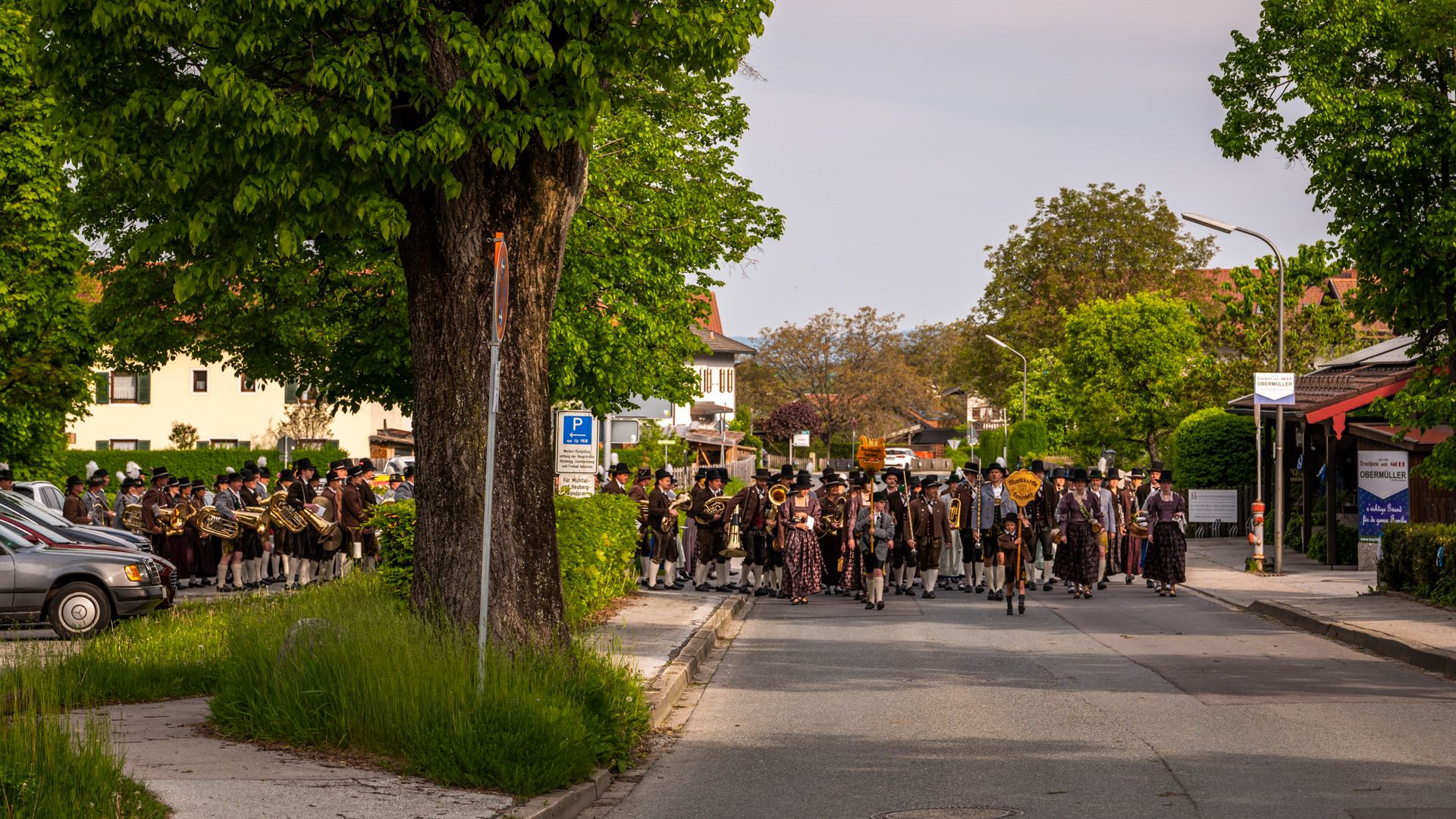 Schon am frühen Morgen marschieren die Musikkapellen Neubeuern, Rohrdorf und Samerberg durch Nußdorf zum Festzelt.