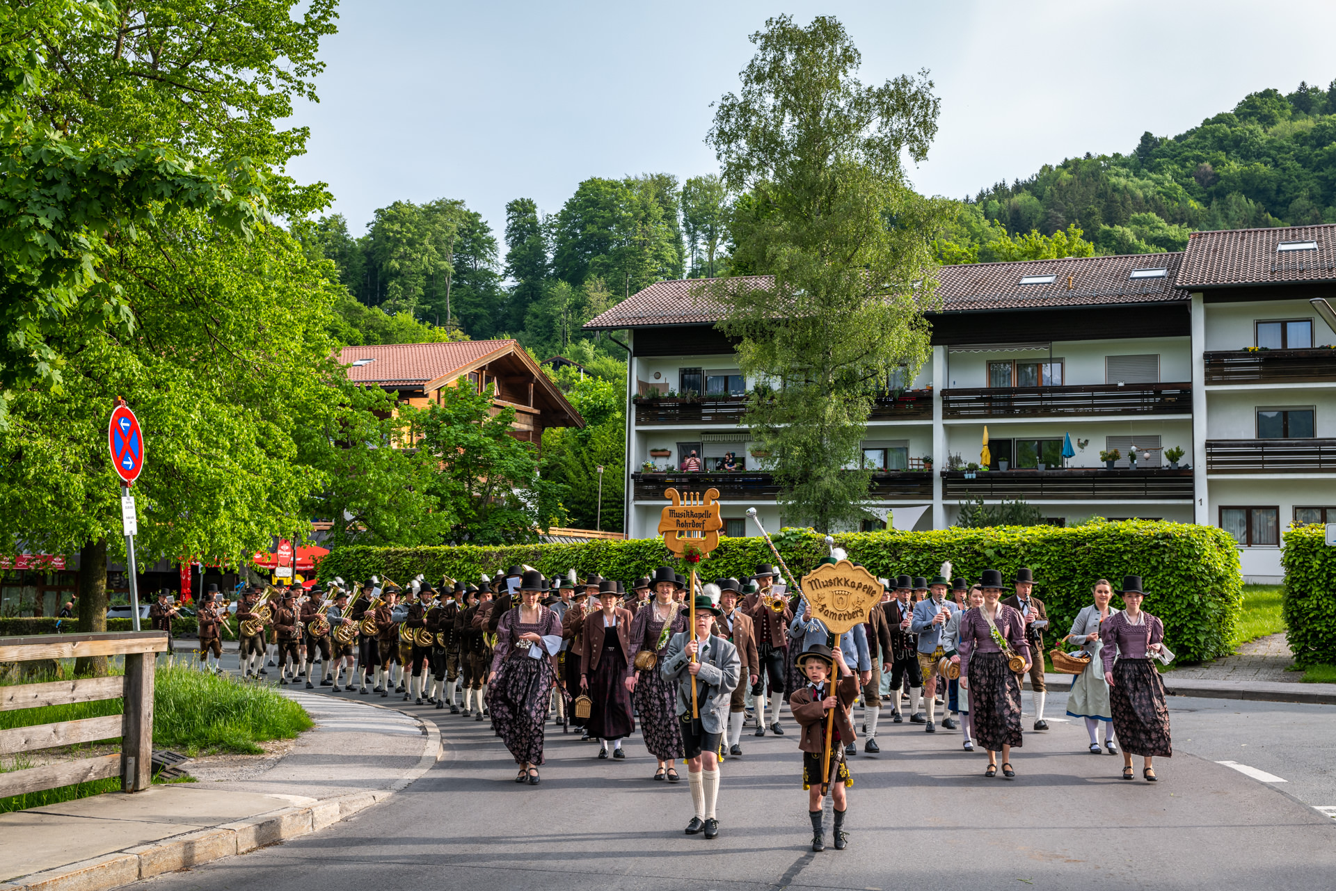 Schon am frühen Morgen marschieren die Musikkapellen Neubeuern, Rohrdorf und Samerberg durch Nußdorf zum Festzelt.