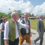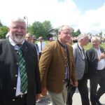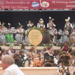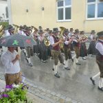 Das 55. Bezirksmusikfest des Musikbundes Nieder- und Oberbayern für den Inn- und Chiemgau, das 35jährige Jubiläum der gastgebenden Griesstätter Musikkapelle, ein neun Meter hoher Notenschlüssel mit Verdacht auf Weltrekord, 30 Musikkapellen und 15 Trachten-, Schützen- und Ortsvereine prägten das Dorf Griesstätt für einen schönen Sonntag lang. Den Auftakt bildete ein Gottesdienst, bei dem Pfarrer Klaus Vogel in seiner Predigt unter freiem Himmel sagte: “Musik verbindet und Musik schafft Gemeinschaft schafft Gemeinschaft. Musikanten müssen lernen, ihr Instrument erklingen zu lassen und Christen müssen lernen, über ihren Glauben verantwortungsbewußt zu reden”. Bürgermeister Robert Aßmus von Griesstätt und Landrat Wolfgang Berthaler als Landrat von Rosenheim würdigten in ihren Grußworten die Bedeutung der Blasmusik für Gesellschaft, Kirche, Dorfgemeinschaft und Ehrenamt. Den Abschluß des Gottesdienstes bildeten Gemeinschaftsstücke und der Musikantengruß, anschließend zogen die Musikanten, Vereine und Gäste ins große und auf verschiedenen Ebenen erstellte Festzelt. Einige Musikkapellen stellten sich noch einer Marsch-Bewertung, wobei sich zeitweise eine Wolke entlud und vor allem die Samerberger Musikkapelle wurde dabei voll von einem Regenguss erwischt. Im Festzelt spielte dann die Blaskapelle Prien aus, sie ist Gastgeber für das nächstjährige Bezirksmusikfest in Prien am Sonntag, 2. Juni.