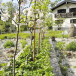 Zusätzlich bieten überall in den Beeten verteilte große Stücke Totholz und Naturstein-Trockenmauern ein Habitat für Käfer- und Insektenlarven. Ein „wildes Eck“, das nur alle zwei bis drei Jahre gemäht wird und ein toleranter Umgang mit Beikräutern bieten zusätzlich Nahrung für Insekten, die auf die im Garten eher unbeliebten Pflanzen wie Vogelmiere, Brennnesseln und Lattichgewächse etc. angewiesen sind.