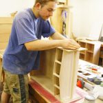 Das Spektrum der Abschlussarbeiten der Schreiner umfasst Vitrinen, Kleiderschränke, Tische und Schreibtische. Diese Arbeiten fertigen die Schüler nach eigenen Entwürfen.