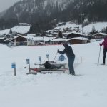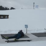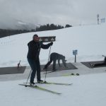 Das musste ich mir näher ansehen, Biathlon hatte ich bisher nur im TV gesehen. Dem Plakat an der Hütte daneben konnte ich entnehmen, dass hier Kunden von “Ernst Reiter Sport Performance”  am Werk waren. Reiter persönlich beaufsichtigte das Schiessen. Er erklärte mir, die Schützen seien Teilnehmer eines Workshops. Langlauf hat sich zu einer Trendsportart entwickelt und Biathlon ist eine der meistgeschauten Sportarten im TV.  Als einer der erfolgreichsten deutschen Biathleten und in den 1980er Jahren  fester Bestandteil der deutschen Staffel bei Großereignissen (Olympiamedaillen in der Biathlonstaffel: Die Bronzemedaille 1984 in Sarajevo und die Silbermedaille 1988 in Calgary) nutzt Reiter seine Erfahrung und gibt Interessierten die Möglichkeit, Biathlon selbst auszuprobieren.