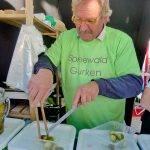 Erstmals ist Sepp Haag aus Bruckmühl mit Original Spreewälder Gurken auf dem Herbstfest Rosenheim vertreten. Gleich am Haupteingang ist das Angebot von Gewürz-, Knoblauch-, Chilli-, Salz-, Mango- und Senf-Gurken zu vernehmen. Diese aussergewöhnliche Vielfalt soll nun um eine aussergewöhnliche Besonderheit erweitert werden, denn durch die unmittelbare Nachbarschaft des Schmankerl-Gurken-Standes zum Flötzinger Festzelt ließ sich Thorsten Diederich als Marketing-Fachmann der Rosenheimer Traditionsbrauerei anregen, eine Bier-Gurke vorzuschlagen. Gesagt – getan: nach einer schönen Weile, in der die frische Gurken in einem Maßkrug mit Wiesn-Märzen-Bier eingelegt waren, probierte Thorsten Friedrich die neue Sorte. “Sehr mild und sanft und mit klarem Bier-Geschmack, das ist so interessant, dass wir neben dem Märzen auch noch weitere Biersorten testen wollen”, so das Urteil des Bier- und Gurken-Spezialisten. Ob und wann die Bier-Gurken in Serie gehen, konnte Sepp Haag zu Beginn der Testphase allerdings noch nicht sagen.