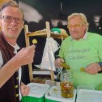 Fotos: Hötzelsperger – Thorsten Diederich (li.) mit Sepp Haag bei der Probe der ersten Bier-Gurken aus dem Maßkrug
