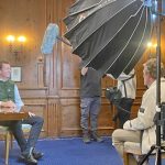 Foto/s: Hötzelsperger –  Aufnahmen des Bayerischen Fernsehen in Schuhbecks „Münchner Kindl-Stuben“ mit Prof. Horst Wurm und geschäftsführendem Vorstand Armin Gastl mit BR-Autor Norbert Haberger.