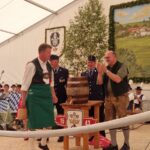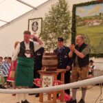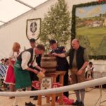 Mit drei gekonnten Schlägen zapfte Erster Bürgermeister Andreas Fenzl von der Gemeinde Rimsting das erste Flötzinger-Faß an als die Greimhartinger Feuerwehr zum Bieranstich anläßlich ihres 150. Vereinsjubiläum ins Festzelt einlud.