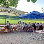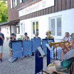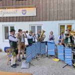 Bereits zum zweiten Mal in der nunmehr gut zweijährigen Zeit als Pächter des Gasthauses Schützenwirt hat Jonas Spensberger musikalischen Besuch aus Kirchheim bei München bekommen. Nach dem ersten winterlichen Gastspiel in den Innenräumen konnte nunmehr bei bestem Sommerwetter der Biergarten genutzt werden. Die Besucher erfreuten sich an Blasmusik, Bier und Biergarten und auch am Gesang der Kapelle „Mia sans“ mit dem Duo „Zwoagschroa“. Wirt Spensberger, der das Schützenhaus der Königlich Privilegierten Feuerschützengesellschaft kurz vor Beginn der Corona-Krise übernahm, kam zu folgendem positiven Resümee als er sagte: „Das war einer der schönsten Abende in der doch recht wechselhaften Coronazeit auch für unser Personal und es war bestimmt nicht das letzte Mal, dass wir Musikanten eine Gelegenheit geben, Biergartenmusik zu machen“.