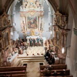 Den Auftakt des Abends gestaltete die Simsseer Alphornblos’n unter der Leitung von Margareta Zilker. Mit ihren kraftvollen, erdigen Klängen füllten sie die Kirche und schufen eine beeindruckende Atmosphäre, die das Publikum sogleich in den Bann zog. Im Gegensatz zu diesen mächtigen Tönen stand der zarte Gesang des Nußdorfer 3/4Gsangs, der mit seinen sanften Stimmen eine fast meditative Ruhe verbreitete. Die Kombination dieser beiden Klangwelten spiegelte das zentrale Thema des Abends wider: das Streben nach Einklang – mit der Natur, den Mitmenschen und Gott.