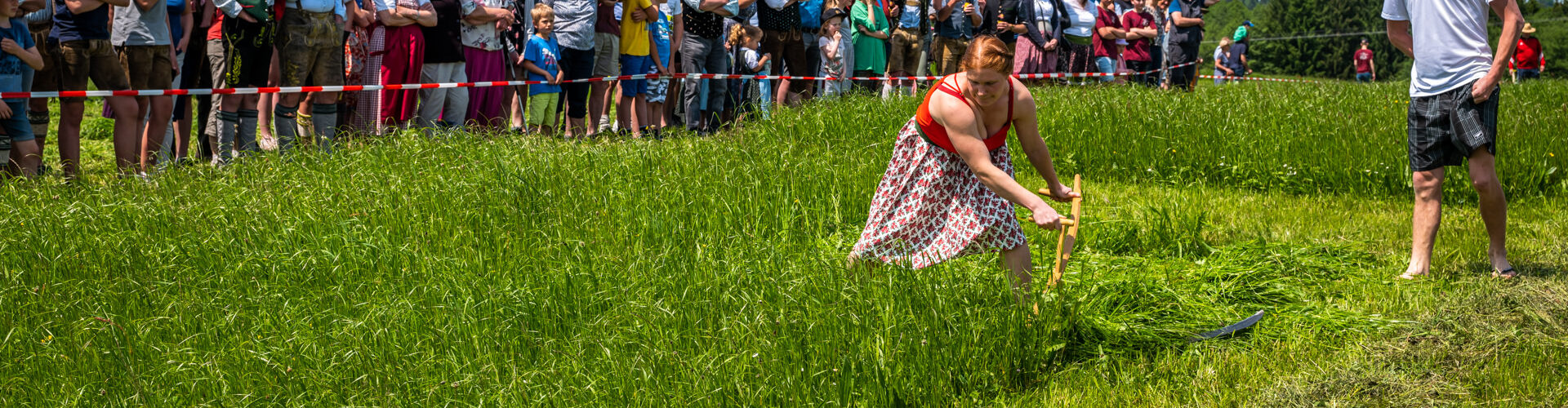Bei bestem Wetter und bei bester Organisation fanden zum Abschluss der Frasdorfer Festwochen mit Jubiläen des Trachtenvereins (111 Jahre) und der Feuerwehr (150 Jahre) die Deutschen Meisterschaften im Handmähen statt. Insgesamt 59 Kinder, Jugendliche, Frauen und Männer nahmen daran teil und wetteiferten um schnellste und sauberste Ergebnisse.
