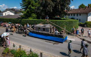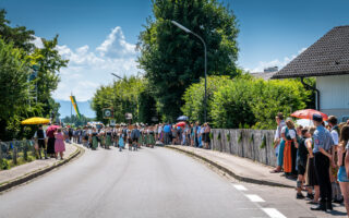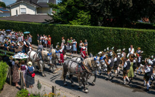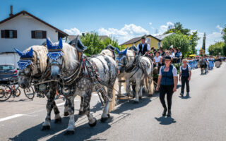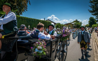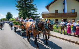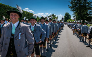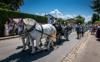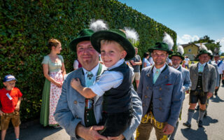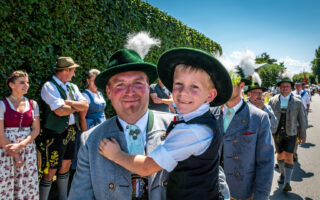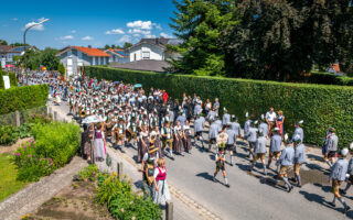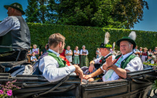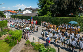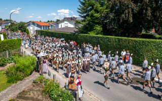 Tausende von Zuschauern zeigten sich – unbeeindruckt von der sommerlichen Hitze – am Nachmittag vom Festzug begeistert, als Trachtenträger, Blasmusikanten und Ehrengäste, Fahnenabordnungen und Musikanten, 27 Kutschen, Motiv- und Trachtlerwagen sowie Vorreiter an ihnen vorbeimarschierten. Ihre Freude über das Zusammenkommen brachten Musik-, Plattler- und Tanzgruppen vor und nach dem Festzug zum Ausdruck.