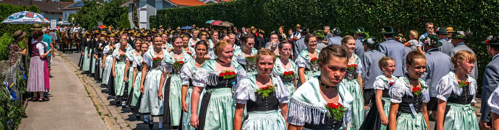 Tausende von Zuschauern zeigten sich – unbeeindruckt von der sommerlichen Hitze – am Nachmittag vom Festzug begeistert, als Trachtenträger, Blasmusikanten und Ehrengäste, Fahnenabordnungen und Musikanten, 27 Kutschen, Motiv- und Trachtlerwagen sowie Vorreiter an ihnen vorbeimarschierten. Ihre Freude über das Zusammenkommen brachten Musik-, Plattler- und Tanzgruppen vor und nach dem Festzug zum Ausdruck.