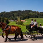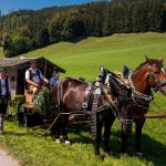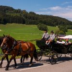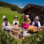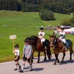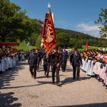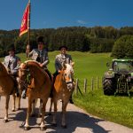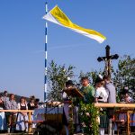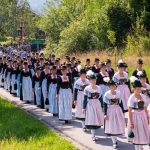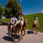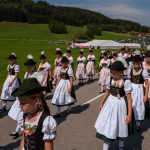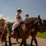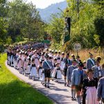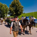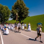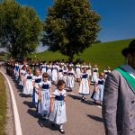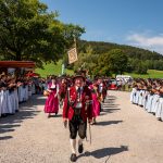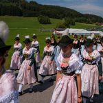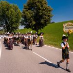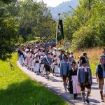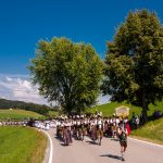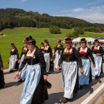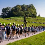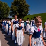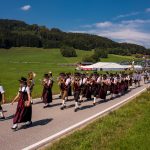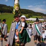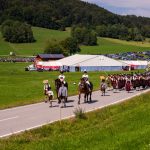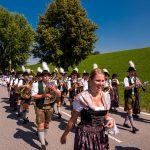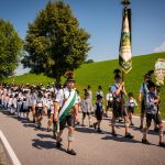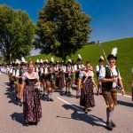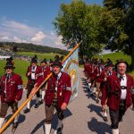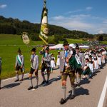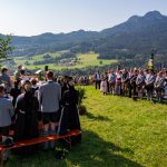 Schönstes Sommerwetter begünstigte bislang alle Feierlichkeiten zum 120jährigen Jubiläum vom Trachtenverein Almenrausch Rossholzen am Samerberg – und so war es auch am Festsonntag, als sich in sechs Zügen eine überaus große Trachtlerschar vom Festzelt zum Gottesdienst oberhalb des Badwirtes in Bewegung setzte. Angeführt wurde der Festzug vom Leonhardiverein Rossholzen und dessen Vorreitern sowie von der Festmusikkapelle Samerberg unter der Leitung von Benedikt Paul.