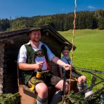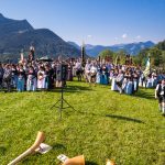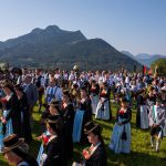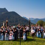 120 Jahre Trachtenverein Rossholzen wurden nicht nur an einem Tag und von einem Verein alleine gefeiert. Im Gegenteil: ein Großteil der rund 320 Vereinsmitglieder, viele Einwohner vom Samerberg und ganz besonders der Festverein haben sich fast zwei Jahre angestrengt, um das Fest genau und gut hinzukriegen. Dies ist ihnen bestens gelungen, zumal sie wertvolle Unterstützung von Festwirt Wolfgang Kirner und von der Brauerei Flötzinger erhielten. „Doch das allein war es nicht, es war auch das Fest der Parkplatzeinweiser, der Kuchenbäckerinnen, der Ton-Techniker  sowie der vielen weiteren fleißigen und leisen Helferinnen und Helfer“, so Vorstand Martin Schober, der selbst mit seiner Familie im großen Netzwerk und an vielen Stellen im Einsatz war. Der Festsonntag war dann der Höhepunkt der Jubiläums-Feierlichkeiten, die schon am frühen Morgen mit dem Weckruf begannen. Aufgrund des sommerlichen und sicheren Wetters kamen die Orts- und Gastvereine in großer Anzahl und gut gelaunt zum Empfang an das Festzelt, das für diesen Sonntag zu klein geworden wäre, wäre es nicht möglich gewesen, zusätzliche Sitz- und Bewirtungsmöglichkeiten im Freien aufzustellen. Schon der Kirchenzug in Richtung Badwirt war beeindruckend, Trachtlerinnen und Trachtler unter dem Motto „Jung und Alt miteinand“, Fahnenabordnungen und Musikkapellen wechselten sich farbenfroh ab und bewegten sich auf einen eindrucksvollen Gottesdienst mit fantastischen Aussichten zu.