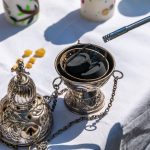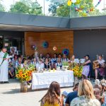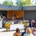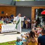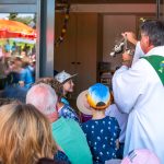 Diakon Günter Schmitzberger weiht den neuen Kindergarten ein.