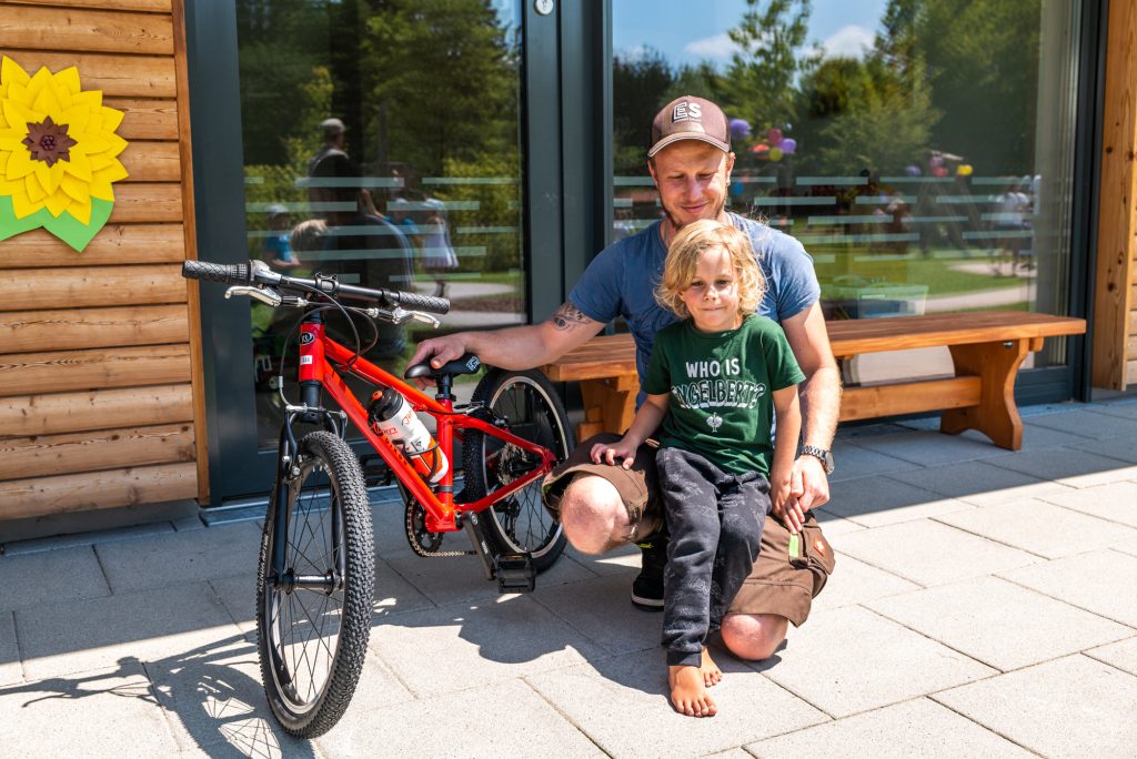 Der vierjährige Sebastian Festner freute sich mit seinem Vater über den Hauptgewinn bei der Tombola: ein brandneues, hochwertiges rotes Kinderfahrrad.