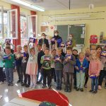– Die Erstklässler an der Grundschule Samerberg erhielten die Brotzeitboxen von Bürgermeister Georg Huber und von Steffi Adeili (Öko-Modellregion). Klassenlehrerin Frau Braun (rechts) und ihre Kolleginnen Frau Auer und Frau Kling (nicht auf dem Foto) unterstützten die Aktion. Foto: Grundschule Samerberg