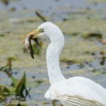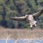 In der Hirschauer Bucht sorgte ein Habicht mehrmals für Aufregung unter den großen Schnatterentenschwärmen. Mehrere Zilpzalpe huschten geschäftig durchs Röhricht. Ein Silberreiher schnappte sich noch einen kleinen Grünfrosch und kurze Zeit später auch noch einen Hecht. Böiger Westwind, dem ein Graureiher in bester Aerodynamik trotze, vertrieb mich vom Beobachtungsturm in der Hirschauer Bucht.