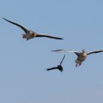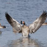 Am Rimstinger Strandbad, wo der Westwind weniger spürbar war, flogen über hundert Graugänse zur ausgiebigen Gefiederpflege ein und wurden von mehreren Rabenkrähen, wohl nur zu deren Vergnügen, attackiert. Stockentenerpel, vermutlich durch die noch sommerliche Wärme irritiert, kämpften um eine erwartungsvoll wartende Entendame.