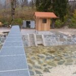 Pegelhäuschen neu: Das neue Pegelhäuschen steht auf einem hohen Betonsockel und kann einem 100-jährlichen Hochwasser standhalten. Neu gebaut sind auch die Pegeltreppe und die Pegelnische, in der die Drucksonde zum Messen des Wasserstandes eingebaut ist.
