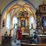 Es ist eine gute Tradition und ein echtes Bekenntnis zum Glauben, zur Heimat und zum Gedenken an die verstorbenen Mitglieder, der alljährliche Bittgang des Griesstätter Trachtenvereins, der dieses Jahr am Sonntag, den 14. September stattfand. Leider regnete es „gscheid“, als um 8 Uhr der Bittgang von Griesstätt ins 3 km entfernte Berg starten sollte. Also wurde rasch umdisponiert und ein Rosenkranz in der schönen Filialkirche in Berg gebetet. Sehr zu unserer Freude zelebrierte den anschließenden feierlichen Gottesdienst, unser neuer Pfarrer Andreas Kolb. Lesungen und Fürbitten wurden sehr gut vorgetragen von Lisa Bauer, in der feschen Röckefrautracht. Und auch der Altardienst, Buam und Dirndl waren zumeist in unserer schönen Tracht erschienen. Und natürlich auch viele von uns Teilnehmern.