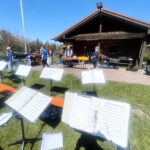 Bestes Frühjahrs- und Sonnenwetter ermöglichte es, dass ohne Zeltaufbau im Freien sowie mit Versorgung aus der Vereinshütte und mit einem Grill ein komplettes Tagesprogramm gestaltet werden konnte. Für die Zwergerl-Musikanten aus den Reihen der Blaskapelle Wildenwart und der Musikkapelle Eggstätt war der Tag geprägt vom gegenseitigen Kennenlernen, von gemeinsamen Spielen sowie von musikalischen Aktivitäten. Unter der Leitung von Eva-Maria Gruber wurden unter anderem die Stücke „Forrest Gump“, „Pirates of the caribbean“, „Hans bleib do!“ oder die „Sternpolka“ einstudiert. Als zum Nachmittag auch noch Mitglieder der beiden Erwachsenenkapellen dazu kamen, wurde noch in einem großen Miteinander die Bayernhymne gespielt. Für die Eltern des Blasmusiknachwuchses war es eine sichtbare Freude, mit welchem Eifer und Begeisterung die Dirndl und Buam am Werke waren. Unter den dankbaren Gästen und Zuhörern waren auch Erster Bürgermeister Christoph Kraus aus Eggstätt, die Vorstände Sebastian Aiblinger und Annemarie Blank vom Musikverein Eggstätt sowie Ehrenvorstand Jakob Steiner Erster Vorstand Andreas Willmann und Zweiter Vorstand Andreas Stoib vom Musikförderverein Wildenwart.