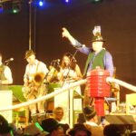 Sichere Garanten für einen Festabend-Erfolg waren die Kapelle „Josef Menzl“ aus der Oberpfalz und aus der Gegend um Regensburg und deren blasmusikalische Schlagfertigkeit. So lenkten sie die Besucher von der vorherigen Regenschirm-Notwendigkeit mit dem Stück ab „Hans, bleib do, Du woaßd ja ned, wias Weda wead!“ und heizten die Stimmung an mit dem Hoch-Wittelsbach-Marsch, mit Otto-Ebner-Klängen und mit einem Landler aus Aschau i. Chiemgau. Es folgten das Königlich-Bayerische Amtsgericht, Weisen der Fidelen Inntaler, eine Hommage an den Niederbayer Jakl Roider oder Erinnerungen an den Ebbser Kaiserklang. Kapellmeister und Klarinettist Josef Menzl freute sich, dass Gäste von der Schweiz bis zum Samerberg nach Greimharting kamen und reagierte spontan auf das Publikum. Einmal bei einem Junggesellenabschied ( mit der flotten Polka „I liab Di – I mog Di“) und bei seinen Aufforderungen zum allgemeinen Tanz. Mit Kuhglocken als Stimmungsverstärker ergänzte er die selbst arrangierten Potpourries vom Bayerischen Wald bis zum Alpenland. Einen blasmusikalischen Gruß schickte die Kapelle mit ihren Stücken wie „Heid gibt´s a Rehragout“ an die Küche von Wolfgang Kirner und an das Kaffee- und Kuchenteam der Greimhartinger Frauen.