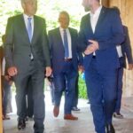 1. Empfang im Freien von links: Bernd Hackl (Arbeitskreis Polizei und Innere Sicherheit) – MdL Klaus Stöttner – Bezirksrat Sebastian Friesinger – Staatsminister Joachim Herrmann – Zweiter Bürgermeister Stadt Rosenheim Daniel Artmann – Landrat Otto Lederer