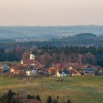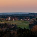 Höhenmoos, ein Ort im Chiemgau liegt auf dem Höhenzug über dem Tal der Rohrdorfer Ache direkt gegenüber dem Hochplateau Samerberg. Von dort aus entstand diese aktuelle Aufnahme und sie zeigt das Dorf, das schon 788 als “Huinmoos” erstmals erwähnt wurde. Wie den Aufzeichnungen von Werner A. Widmann im Buch “Der Chiemgau” zu entnehmen ist, stand zu damaliger Zeit bereits eine Kirche, worauf das urtümliche Patrozinium St. Peter der heutigen Pfarrkirche hinweist.