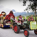 Bereits am Donnerstag, 23.8. startete das Kufsteinerland mit dem Dorfabend in Ebbs in das große Blumenkorso-Wochenende. Im Mittelpunkt die Bundesmusikkapelle Ebbs, die an drei Tagen mit einem Platzkonzert, Unterhaltung im Festzelt und Marschmusik beim Umzug vollen Einsatz zeigte. Musikalischer Höhepunkt war am Freitagabend das Open Air Konzert mit Hansi Hinterseer und dem Original Tiroler Echo. Rund 3.000 Hansi-Fans pilgerten zur Hödnerhof Arena Ebbs, um seine Gute-Laune-Lieder gepaart mit seinem sympathischen Charme und spritzigem Auftritt zu genießen. Es schafft es jedes Jahr aufs Neue, die Menge zu begeistern. Auch 2019 wird er wieder im Rahmen des Blumenkorso-Wochenendes auf der Bühne stehen. Nicht minder begeisterungsfähig zeigten sich die Stars des Schlagertages am Samstag, 25.8. im Kultur Quartier Kufstein. Die Grubertaler sorgten gemeinsam mit Die Ladiner und Monika Martin für aufgeheizte Stimmung an diesem kühlen, regnerischen Spätsommertag. Bei freiem Eintritt kamen Schlagerstars aus Nah und Fern voll auf ihre Kosten. Neben den großen Auftritten leisteten auch die Ebbser Vereine und Wirtsleute ihren Beitrag zur Unterhaltung der zahlreichen Gäste. So fand „ganz nebenbei“ das traditionelle Stoahebn statt. Der in Vergessenheit geratene Stein wurde bereits 2017 wieder zum Leben erweckt. Stärkster war in diesem Jahr Daniel Mühlberger aus Kössen. Er schaffte es, beachtliche 325 Kilogramm zu heben. Noch lange nachdem die Blumenparade wieder zur Prämierung in die Hödnerhof Arena zurückgekehrt ist, wurde im Ortskern von Ebbs gefeiert. Immerhin dauert es nun wieder ein ganzes Jahr bis Hansi das Kufstein-Lied anstimmen wird und sich die Styroporfiguren von Bildhauermeister Alois Lamplmeier in farbenfrohe Kunstwerke verwandeln.