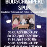 Die Theatervorbereitungen in Söllhuben laufen bereits auf Hochtouren. Für alle Theaterbegeisterten haben die Söllhubener Spielleiter des Trachtenvereins, Konrad Fischer und Martin Alt wieder ein besonderes Schmankerl ausgewählt. Beim “Bodschamperlspuk” von Ralph Wallner gibts wieder allerhand zum lachen.