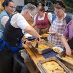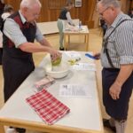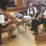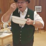 Die anwesenden Kursteilnehmer, konnten nicht nur zuschauen, sondern auch selbst mit Hand anlegen, wie z.B. die verschiedensten Strudelteige herstellen, Brotteig ansetzen, oder Brote in den vorgeheizten Steinbackofen einschießen usw. Die Teilnehmerinnen und Teilnehmer hatten sichtlich Freude daran, traditionelle Backtechniken auszuprobieren. Der köstliche Duft frisch gebackener Spezialitäten erfüllte die Edelweiß-Scheuer und lud anschließend zum Verkosten ein. Begleitet wurde die Veranstaltung von der Ziachmusi der beiden Musikwarte des Rhein-Main-Gauverbandes, Michi und Jürgen, mit Posaunenbegleitung von Steffen Feldmann vom Trachtenverein Mainz-Weisenau. Bei der Verkostung der herzhaften Schmankerln blieb anschließend noch Zeit für Gespräche und Austausch der Teilnehmer und Gäste untereinander.