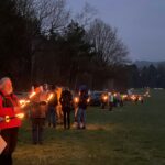 In der einbrechenden Dämmerung machten sie mit Feuerschalen und Fackeln die aktuelle Trassenvariante sichtbar. Die Teilnehmer waren sich einig, dass es den Neubau einer nach ihrer Meinung nach kostspieligen und umweltzerstörenden Hochgeschwindigkeitsstrecke nicht braucht. Stattdessen sollten die vorhandenen Bahnstrecken zügig in Stand gesetzt und nach Neubaustandards ausgebaut werden.